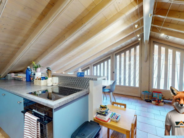 L’appartement comprend une spacieuse pièce de vie, une chambre confortable, une petite chambre, une salle de bains et un WC . Le chauffage individuel garantit une gestion optimale de votre confort thermique.
