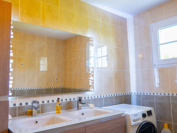 – Une salle de bain avec baignoire, cinq buses et une salle d’eau supplémentaire.