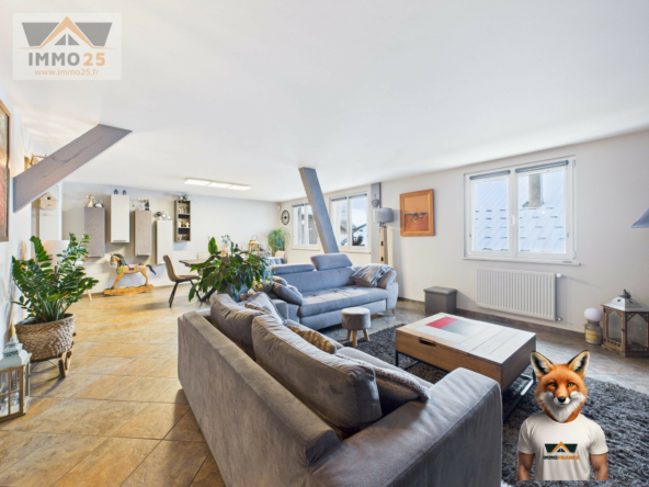 IMM025 à Pontarlier, a le plaisir de vous proposer en exclusivité, cet appartement en duplex, de 149 m2 au sol où l’effet maison est garanti ! Conçu pour une grande famille, il allie confort et tranquillité avec 3 chambres et un bureau (qui peut être transformé en 4e chambre), une cuisine américaine et son cellier ouverte sur un vaste salon séjour, une mezzanine, et sanitaires à tous les étages, (salles d’eau et WC séparés). La chambre parentale dispose d’un grand dressing.