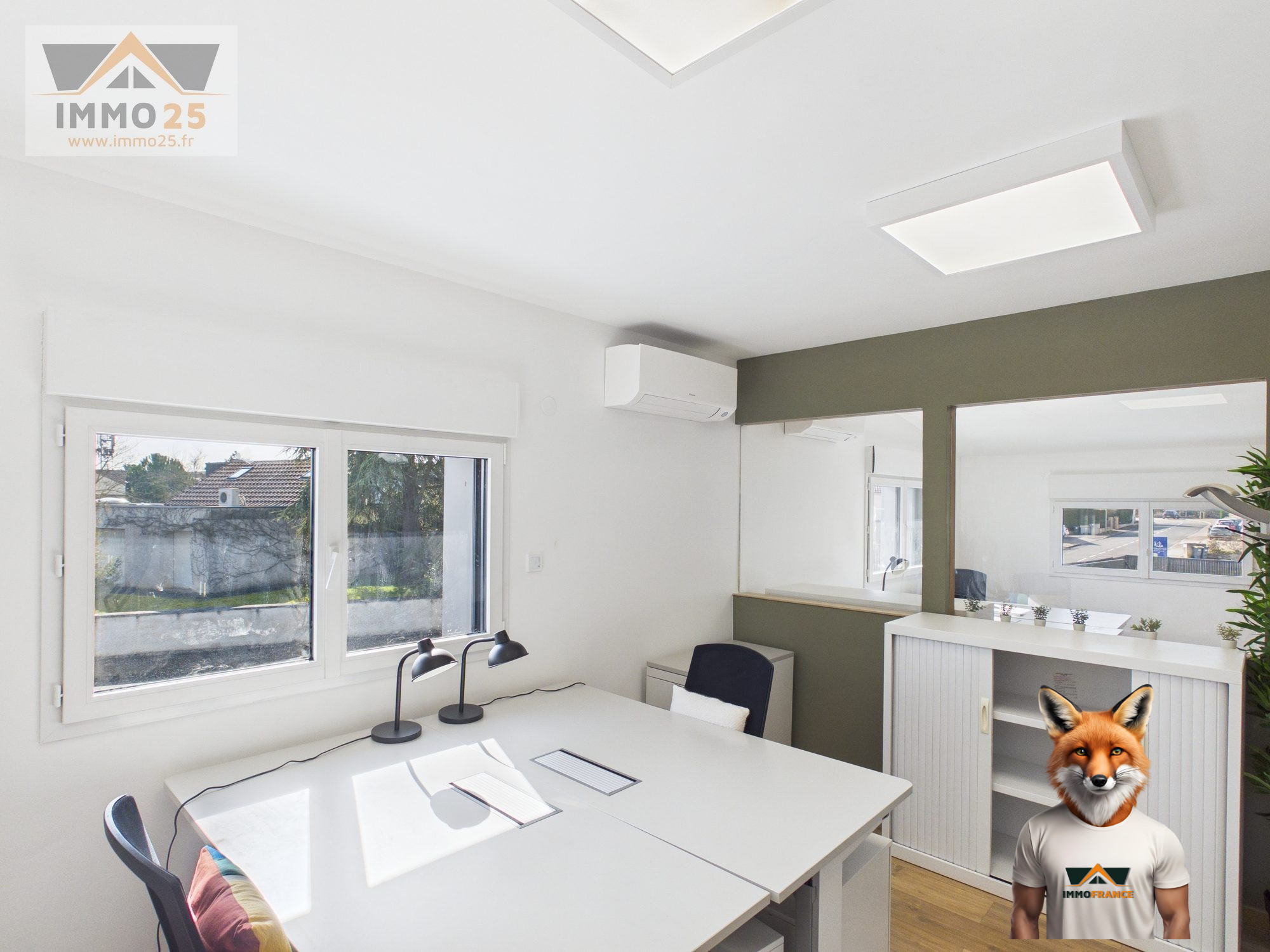 Vous retrouverez 1 grande entrée avec accès PMR et 1 jolie pergola bioclimatique, 1 espace d’accueil, 1 grande salle de réunion, 2 bureaux climatisés, 1 cuisine aménagée, 1 salle d’eau et 2 sanitaires.
