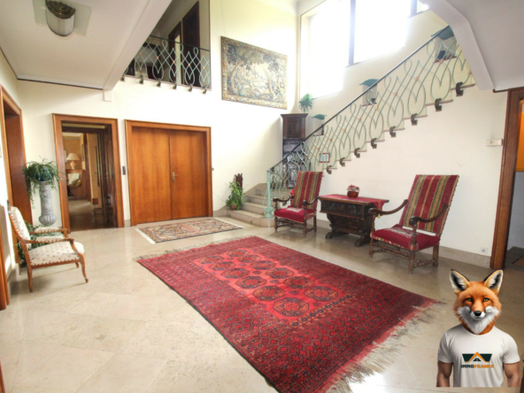– Au rez-de-chaussée : entrée par véranda donnant sur un majestueux hall d’entrée desservant : salon, salle à manger, cuisine indépendante équipée avec une pièce repas et un accès sur une véranda et une terrasse, un bureau (pouvant servir de chambre), un cabinet de toilette avec WC séparé, dégagement ;